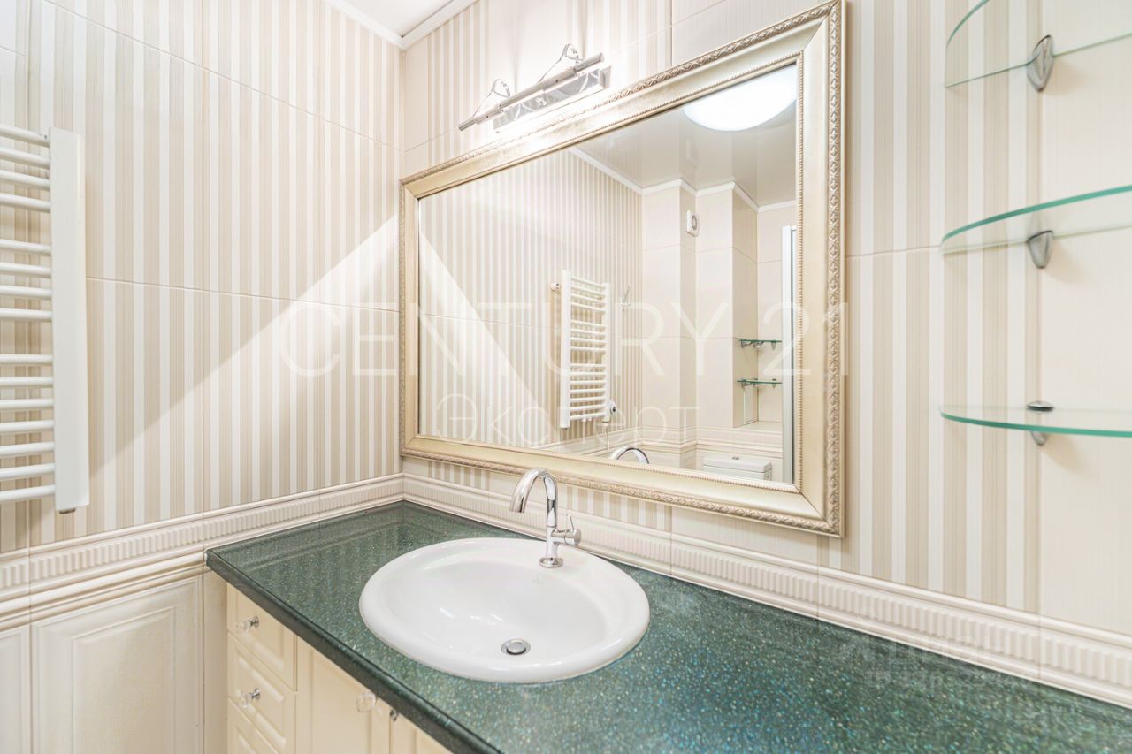Светлая и очень теплая квартира, в которой сочетается стиль и комфорт. Выполнен качественный ремонт. Теплые полы (санузел, коридор, кухня и лоджия). В квартире установлены теплосчетчики, что дает возможность точно учитывать потребляемое тепло и корректировать режим отопления. Кухня укомплектована встроенной техникой premium-класса (духовой шкаф, посудомоечная машина и т.д.), выдвижные системы Blum. Установлен фильтр для очистки воды. На лоджии имеется шкаф для хранения, что помогает держать вещи организованно и экономить место для увеличения полезной площади. Часть мебели остается по согласованию. Чистая продажа — один взрослый собственник.
