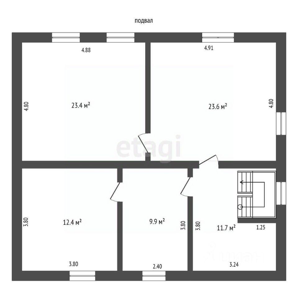 Строение выполнено на прочном фундаменте и состоит из двух этажей, в доме имеется высокий подвал высотой 1,95 м.