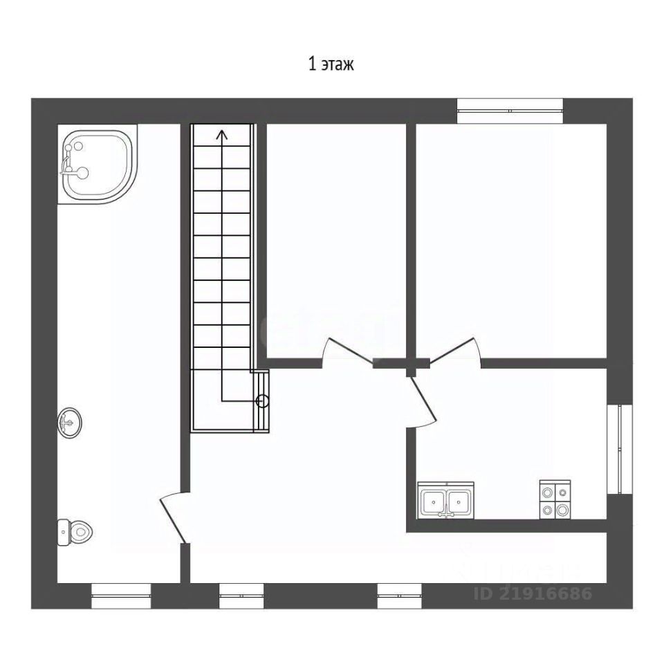 1 уровень: - две жилые комнаты - жилая комната 19.9 кв м и спальня с гардеробной 16.9 кв м, - кухня со встроенной бытовой техникой - посудомоечная машина, холодильник, духовой шкаф , - совмещенный сан.узел, - из комнаты на 2 этаже имеется выход на балкон-террасу, к которой примыкает лестница со спуском во внутренний двор дома на приусадебный участок.