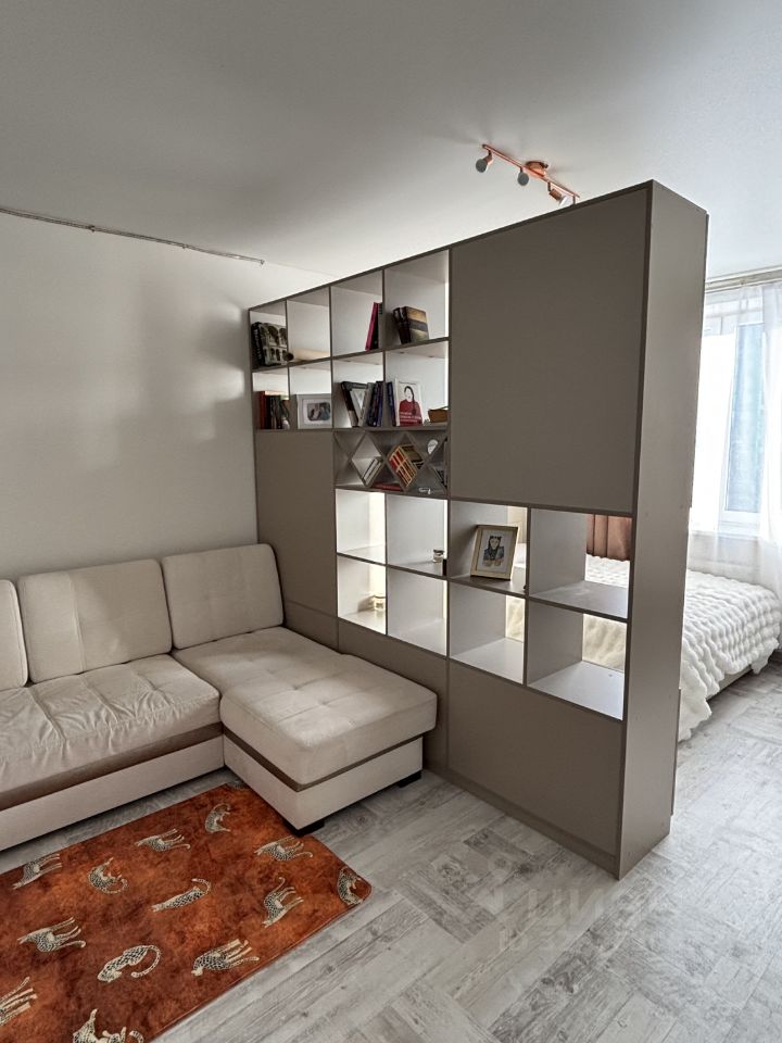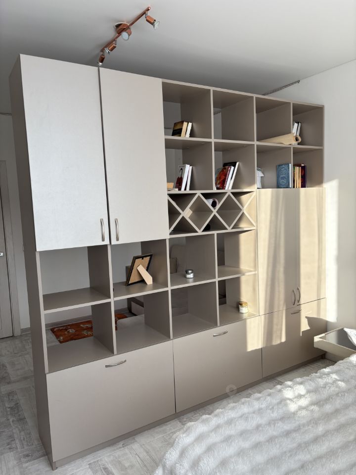 В квартире остаётся вся мебель: • В спальне двуспальная кровать, раскладной диван с местом для хранения, шкафы, рабочий стол, • На кухне просторный гарнитур и обеденная зона, • В коридоре шкаф-купе, напольная вешалка, обувница и пуф с дополнительным местом для хранения. Санузел также оборудован всем необходимым.