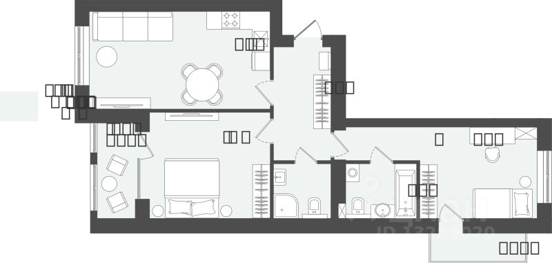 Продаётся 2-комнатная квартира в строящемся доме (Дом 1), срок сдачи: III-кв. 2026, общей площадью 67.03 кв.м., на 3 этаже.