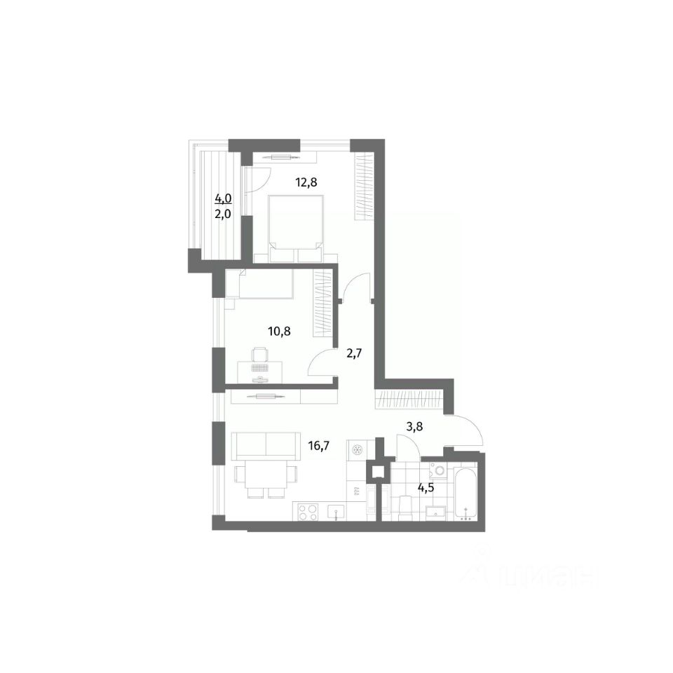 продам 2-к, Имени Антона Пошкуса, 2 корп. 26 982 300 ₽