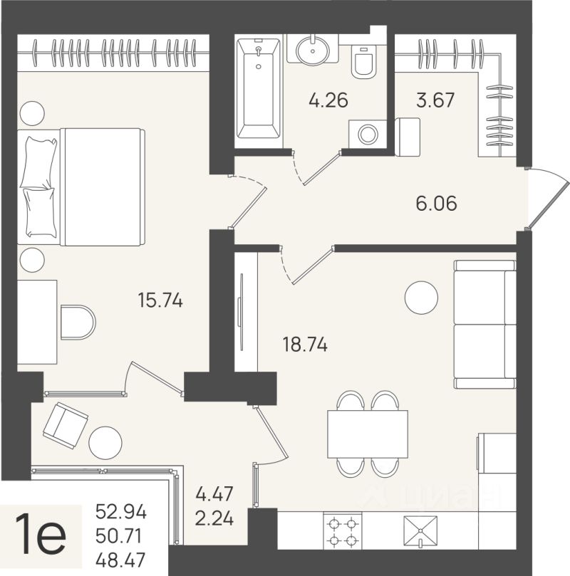Продаётся 1-комнатная квартира в строящемся доме (Дом 3), срок сдачи: IV-кв. 2026, общей площадью 50.71 кв.м., на 4 этаже.