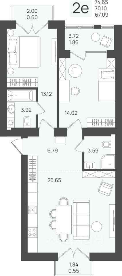 Общая площадь70,1 м2