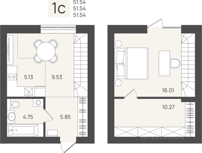 Общая площадь51,54 м2