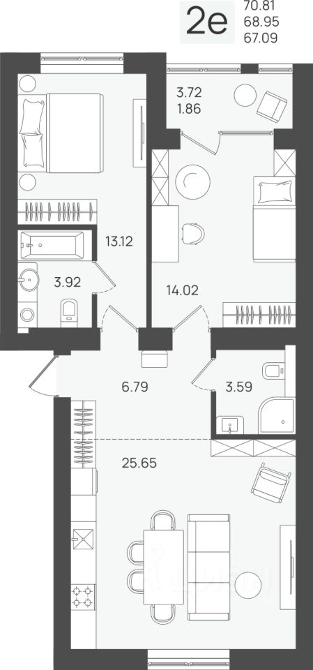 Общая площадь68,95 м2