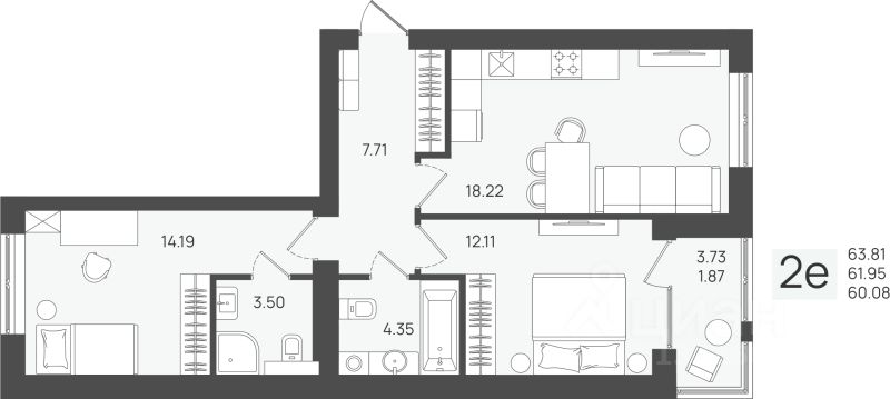 Общая площадь61,95 м2