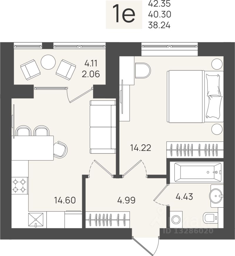 Общая площадь40,3 м2
