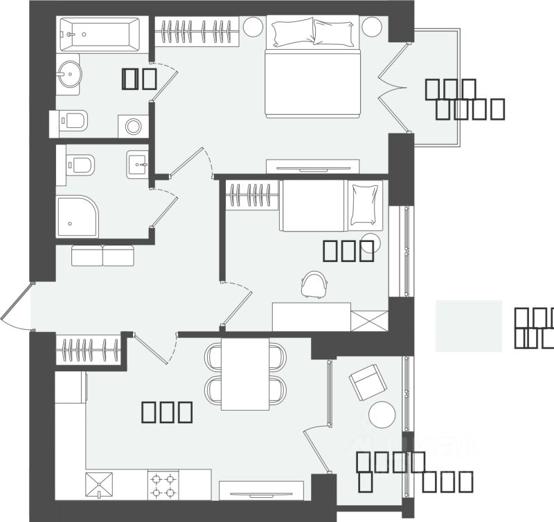 Продаётся 2-комнатная квартира в строящемся доме (Дом 1), срок сдачи: III-кв. 2026, общей площадью 55.21 кв.м., на 2 этаже.