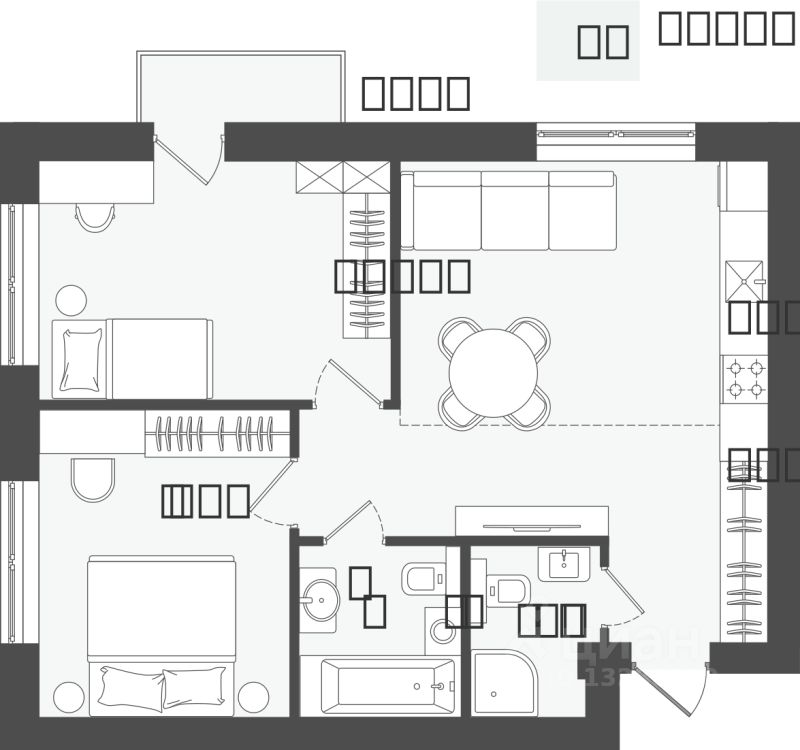 Продаётся 2-комнатная квартира в строящемся доме (Дом 1), срок сдачи: III-кв. 2026, общей площадью 58.75 кв.м., на 3 этаже.