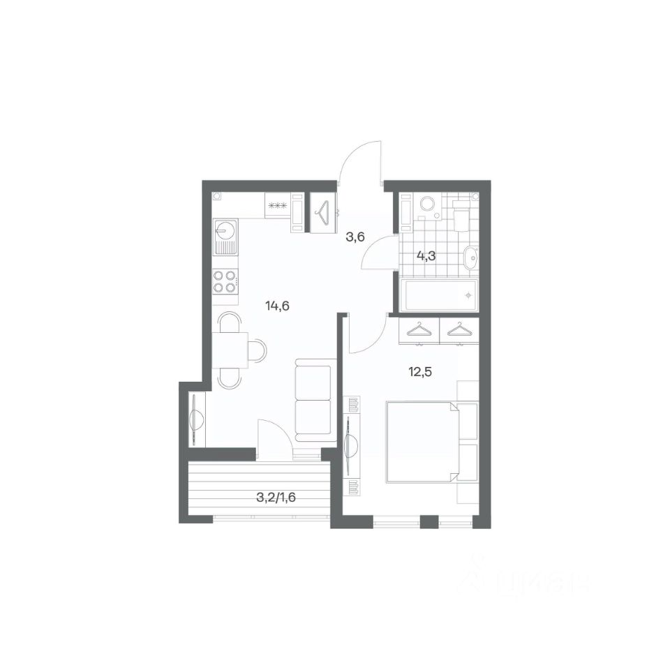 Продается квартира площадью 36.6 м² на 3 этаже 3 секции в Гагарина 30 от компании ГК ''ТРЕСТ''. Площадь кухни 14.6 м². Жилой комплекс комфорт-класса ''Гагарина 30'' расположен в Ленинградском районе Калининграда на улице Юрия Гагарина. Жилой комплекс включает в себя три корпуса высотой 9-18 этажей. Срок сдачи намечен на 1 квартал 2028 года.