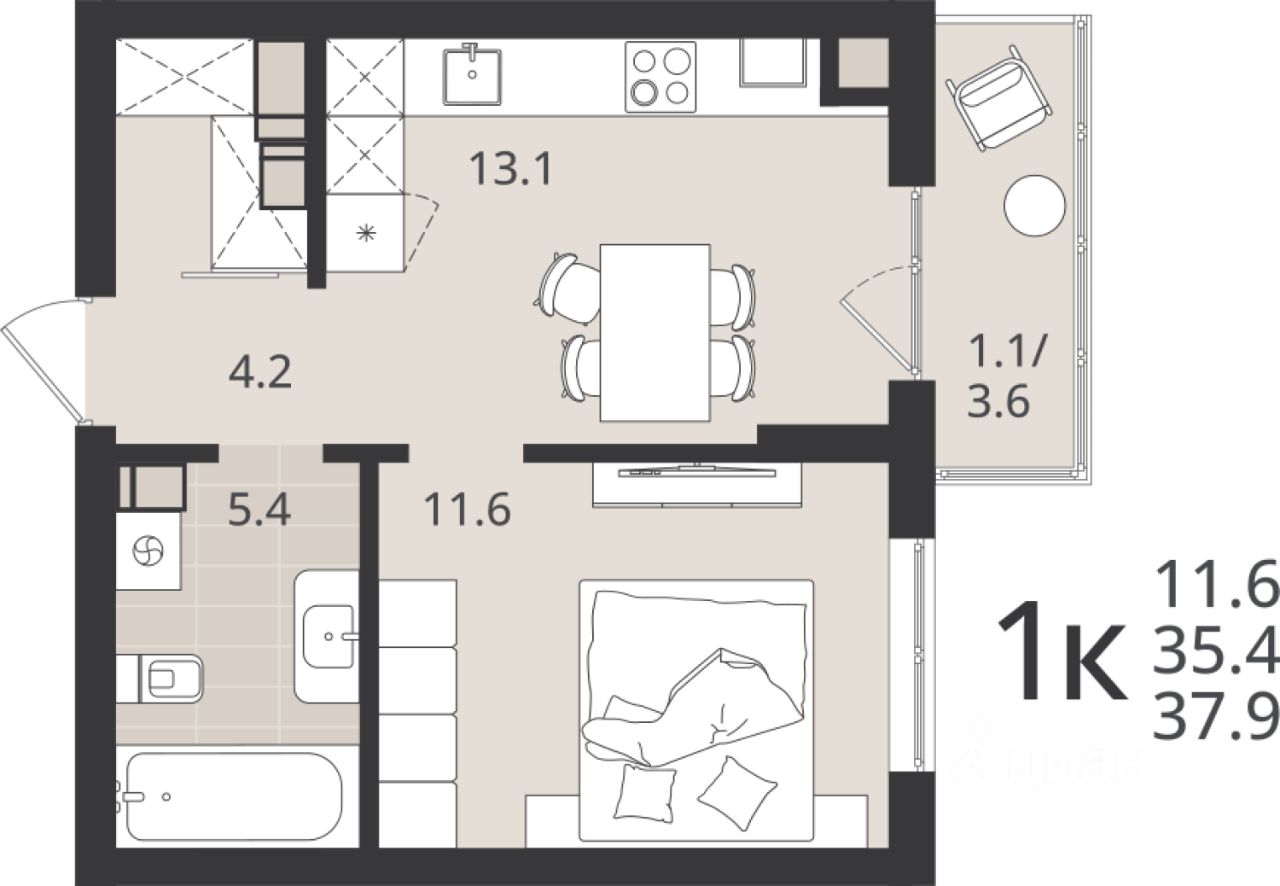 Общая площадь35,4 м2