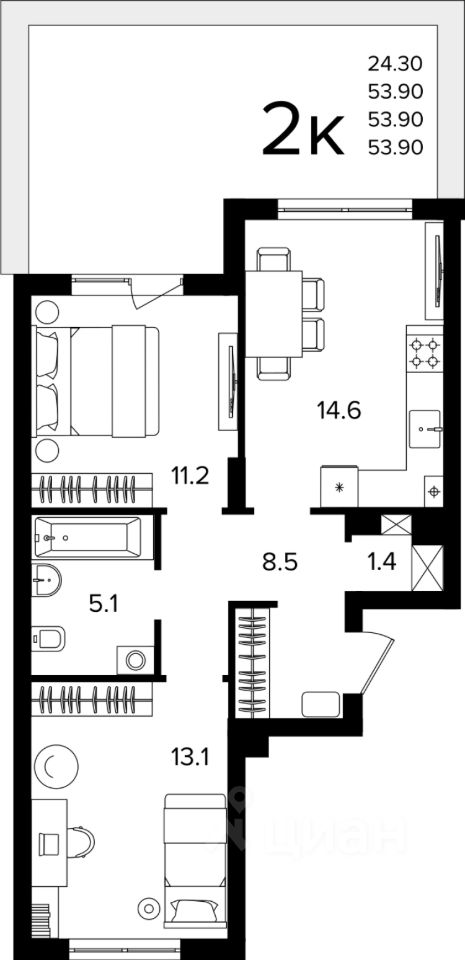 Общая площадь53,9 м2