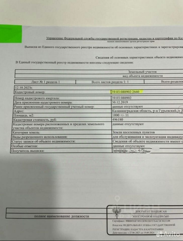Кадастровый номер — 39:03:080902:2660