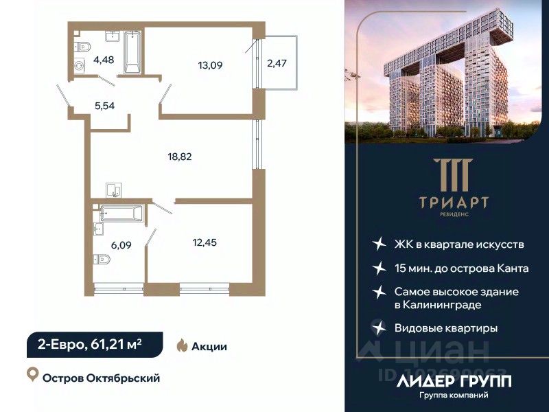продам 2-к, Солнечный бульвар12 242 000 ₽