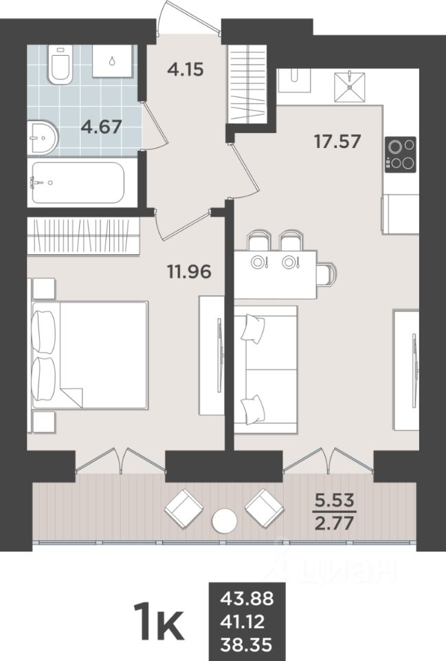 Общая площадь41,12 м2