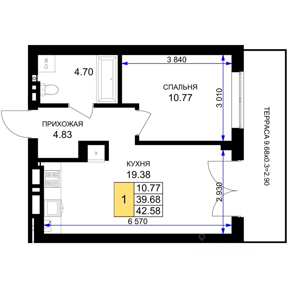 Продаётся 1-комнатная квартира в строящемся доме (Дом 10 (3 очередь)), срок сдачи: III-кв. 2027, общей площадью 42.58 кв.м., на 1 этаже. Новый жилой комплекс ''Включи'' от застройщика ''СпецСтройКубань'' расположен в г. Гурьевск в районе Гурьевского шоссе.
