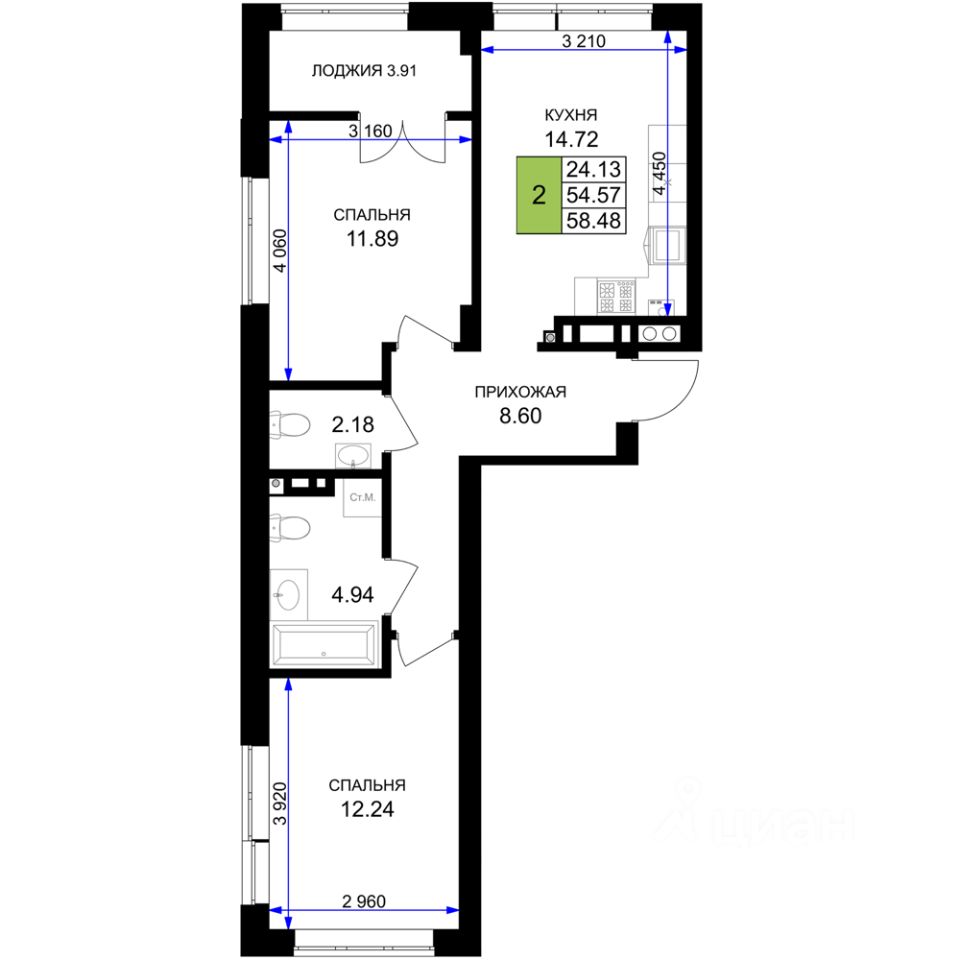 Продаётся 2-комнатная квартира в строящемся доме (Дом 8 (2 очередь)), срок сдачи: III-кв. 2027, общей площадью 58.48 кв.м., на 6 этаже. Новый жилой комплекс ''Включи'' от застройщика ''СпецСтройКубань'' расположен в г. Гурьевск в районе Гурьевского шоссе.