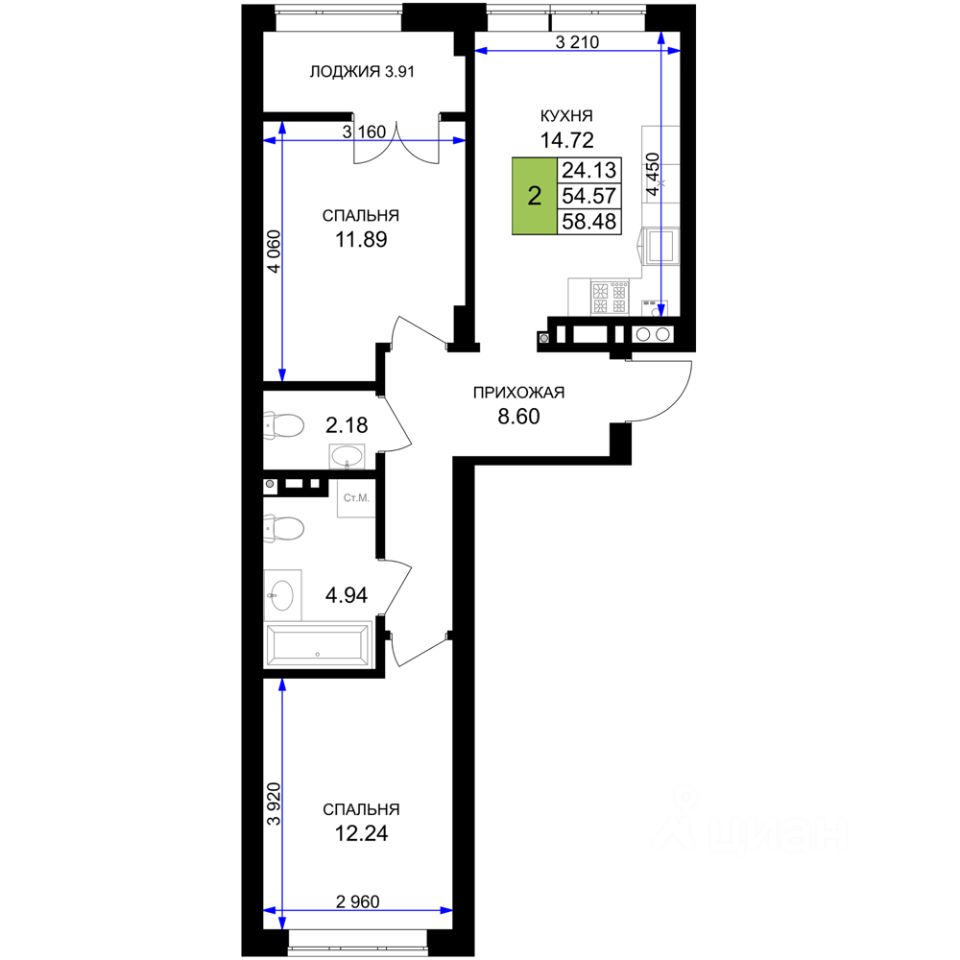 Продаётся 2-комнатная квартира в строящемся доме (Дом 8 (2 очередь)), срок сдачи: III-кв. 2027, общей площадью 58.48 кв.м., на 6 этаже. Новый жилой комплекс ''Включи'' от застройщика ''СпецСтройКубань'' расположен в г. Гурьевск в районе Гурьевского шоссе.
