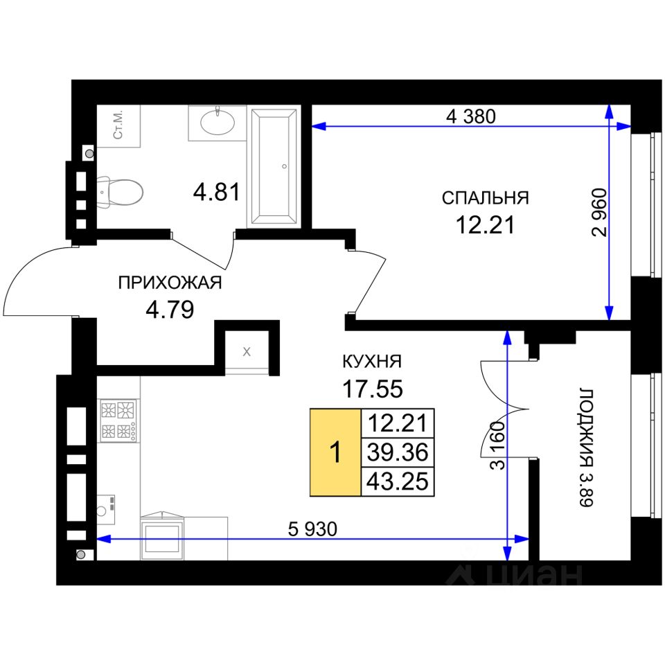 Продаётся 1-комнатная квартира в строящемся доме (Дом 10 (3 очередь)), срок сдачи: III-кв. 2027, общей площадью 43.25 кв.м., на 3 этаже. Новый жилой комплекс ''Включи'' от застройщика ''СпецСтройКубань'' расположен в г. Гурьевск в районе Гурьевского шоссе.