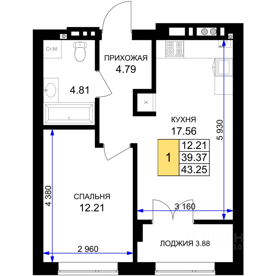 Продаётся 1-комнатная квартира в строящемся доме (Дом 10 (3 очередь)), срок сдачи: III-кв. 2027, общей площадью 43.25 кв.м., на 2 этаже. Новый жилой комплекс ''Включи'' от застройщика ''СпецСтройКубань'' расположен в г. Гурьевск в районе Гурьевского шоссе.