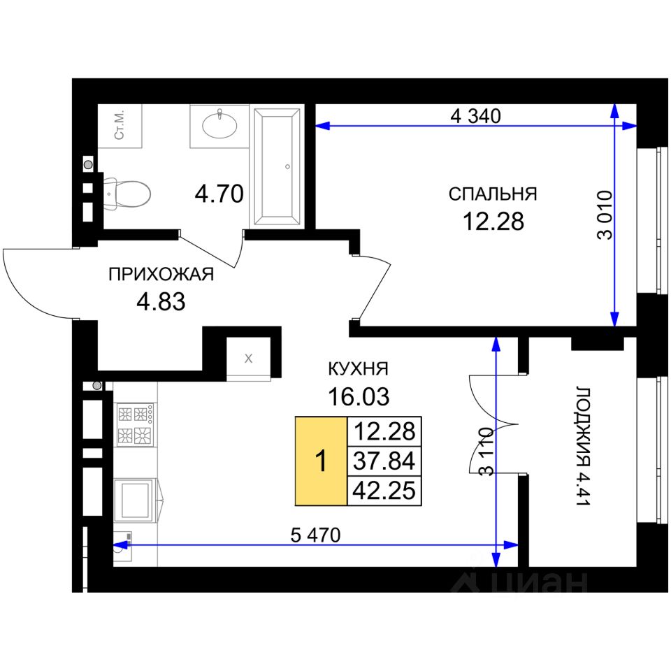 Продаётся 1-комнатная квартира в строящемся доме (Дом 10 (3 очередь)), срок сдачи: III-кв. 2027, общей площадью 42.25 кв.м., на 5 этаже. Новый жилой комплекс ''Включи'' от застройщика ''СпецСтройКубань'' расположен в г. Гурьевск в районе Гурьевского шоссе.