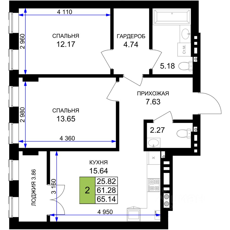 Продаётся 2-комнатная квартира в строящемся доме (Дом 9 (2 очередь)), срок сдачи: III-кв. 2027, общей площадью 65.14 кв.м., на 3 этаже. Новый жилой комплекс ''Включи'' от застройщика ''СпецСтройКубань'' расположен в г. Гурьевск в районе Гурьевского шоссе.