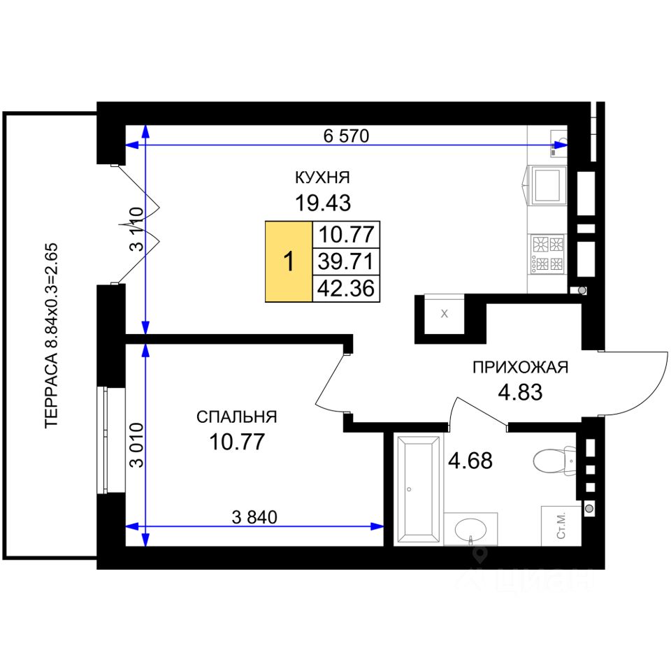продам 1-к, Гурьевск6 777 600 ₽