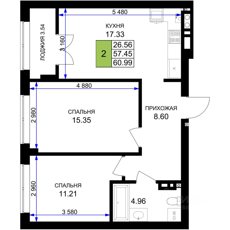 Продаётся 2-комнатная квартира в строящемся доме (Дом 7 (2 очередь)), срок сдачи: I-кв. 2027, общей площадью 60.99 кв.м., на 3 этаже. Новый жилой комплекс ''Включи'' от застройщика ''СпецСтройКубань'' расположен в г. Гурьевск в районе Гурьевского шоссе.