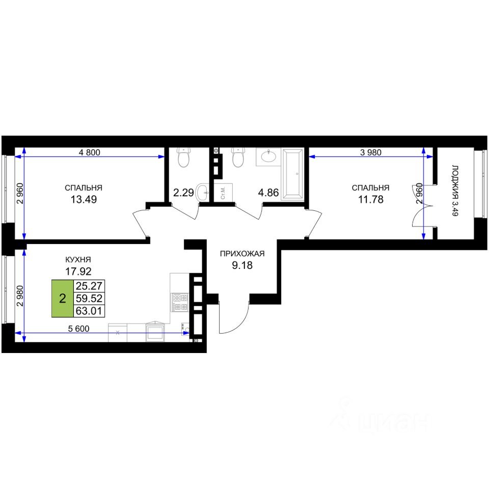Продаётся 2-комнатная квартира в строящемся доме (Дом 10 (3 очередь)), срок сдачи: III-кв. 2027, общей площадью 63.01 кв.м., на 5 этаже. Новый жилой комплекс ''Включи'' от застройщика ''СпецСтройКубань'' расположен в г. Гурьевск в районе Гурьевского шоссе.