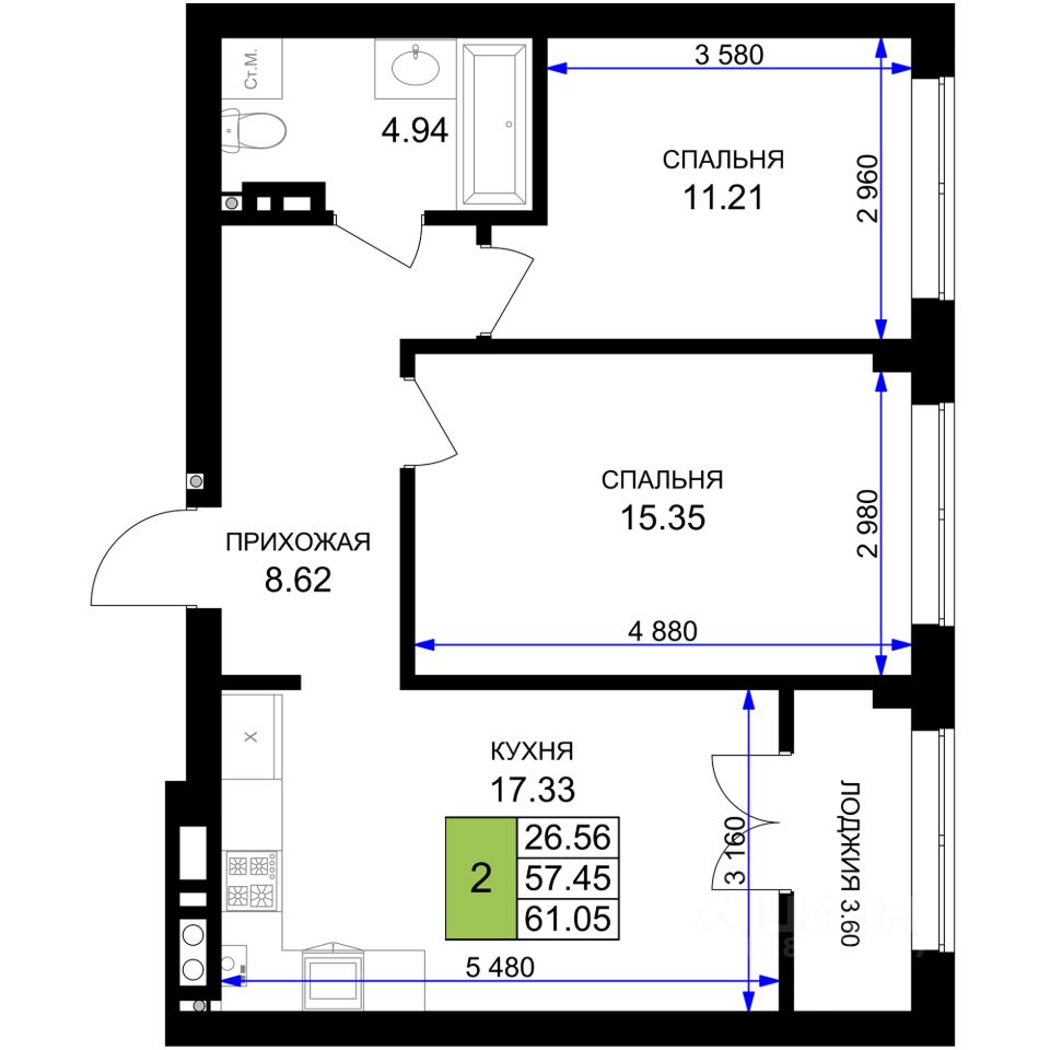 Продаётся 2-комнатная квартира в строящемся доме (Дом 6 (2 очередь)), срок сдачи: I-кв. 2027, общей площадью 61.05 кв.м., на 6 этаже. Новый жилой комплекс ''Включи'' от застройщика ''СпецСтройКубань'' расположен в г. Гурьевск в районе Гурьевского шоссе.