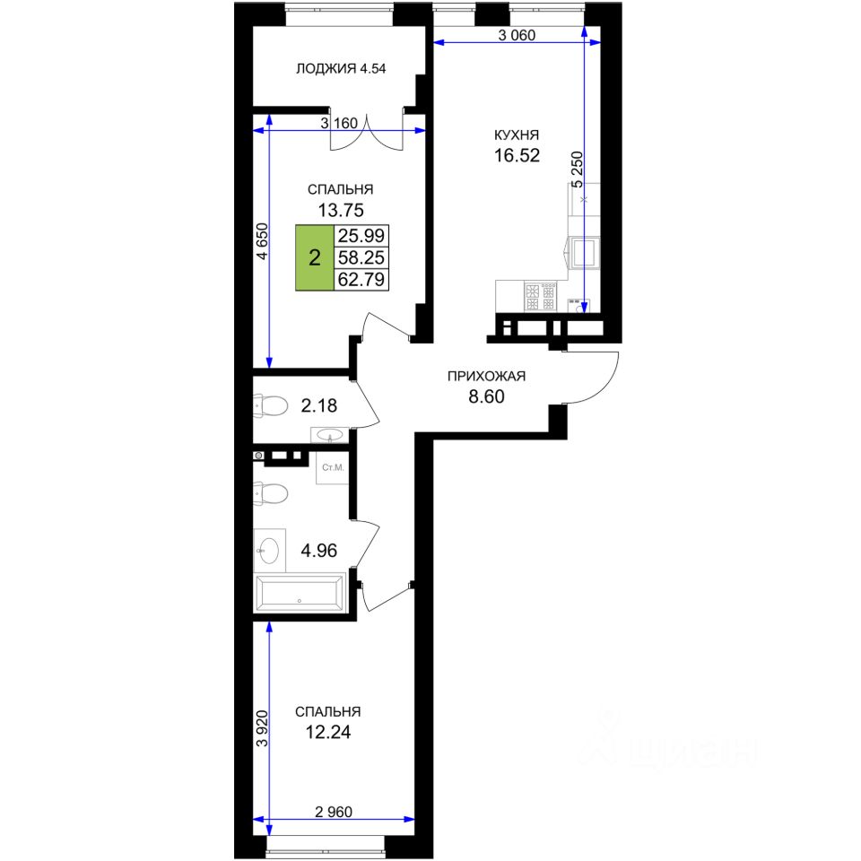 Продаётся 2-комнатная квартира в строящемся доме (Дом 6 (2 очередь)), срок сдачи: I-кв. 2027, общей площадью 62.79 кв.м., на 3 этаже. Новый жилой комплекс ''Включи'' от застройщика ''СпецСтройКубань'' расположен в г. Гурьевск в районе Гурьевского шоссе.