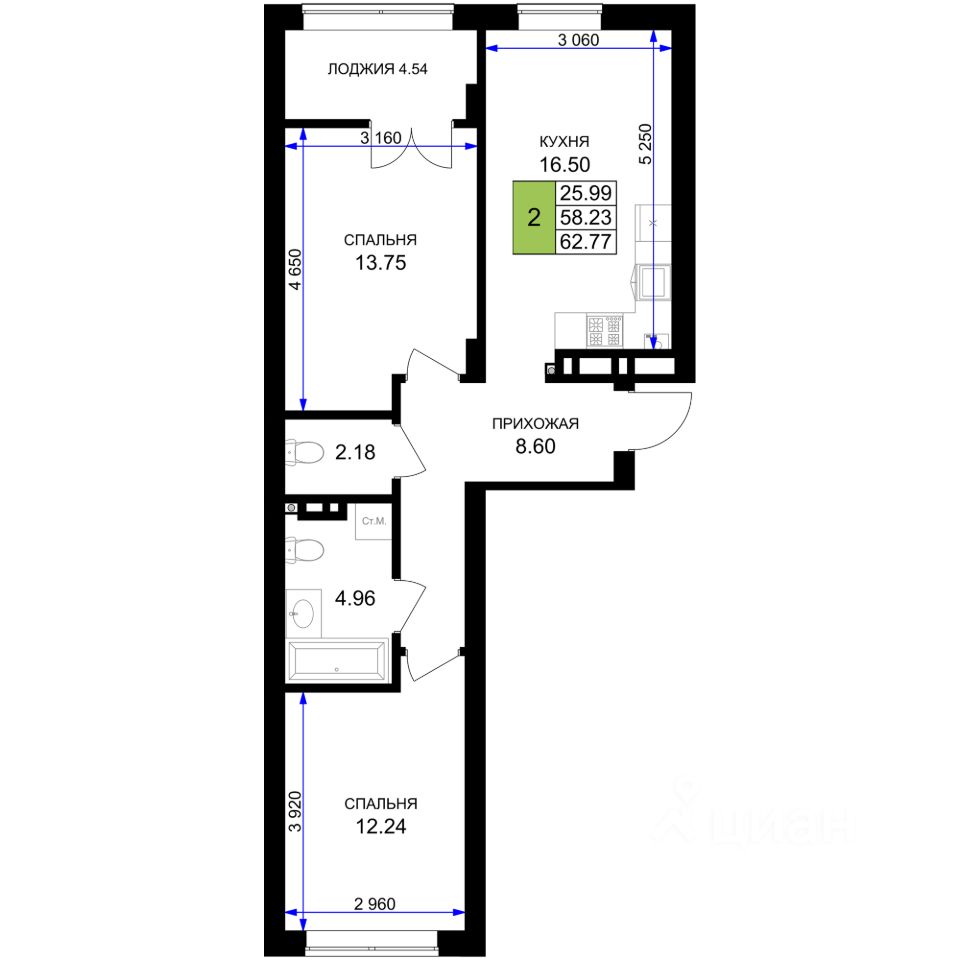 Продаётся 2-комнатная квартира в строящемся доме (Дом 10 (3 очередь)), срок сдачи: III-кв. 2027, общей площадью 62.77 кв.м., на 5 этаже. Новый жилой комплекс ''Включи'' от застройщика ''СпецСтройКубань'' расположен в г. Гурьевск в районе Гурьевского шоссе.