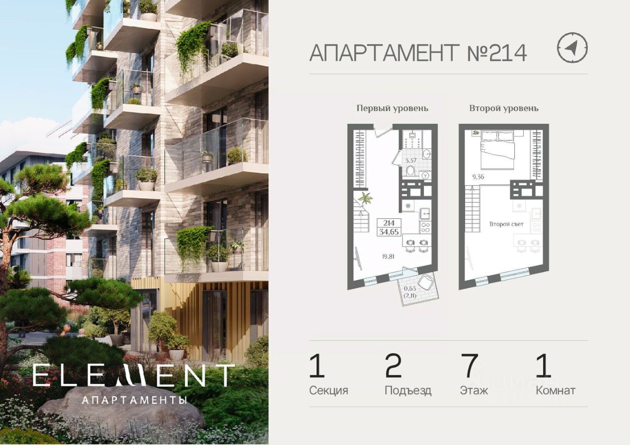 Наша уникальность — это земельный банк, состоящий из исключительных городских и курортных локаций, которые позволяют нам строить грандиозные планы для создания жилых пространств нового поколения.Продается 1-комнатная квартира 214 в ЖК Element.