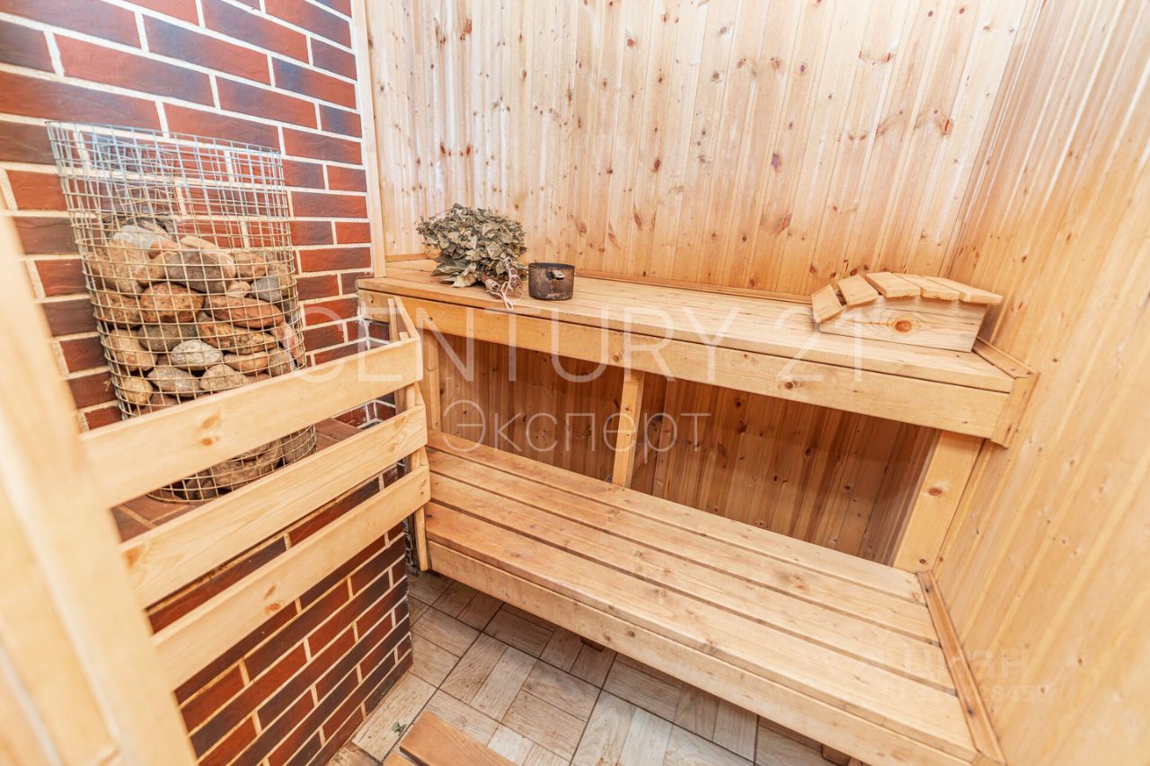 Площадь дома 173 кв. м. В котором просторная кухня, прекрасная гостиная с большими окнами и выходом на просторную террасу, где можно проводить вечерние посиделки с близкими и друзьями. В отдельном крыле обустроена баня и есть отдельный, не совмещенный с жилой зоной, проход в гараж.