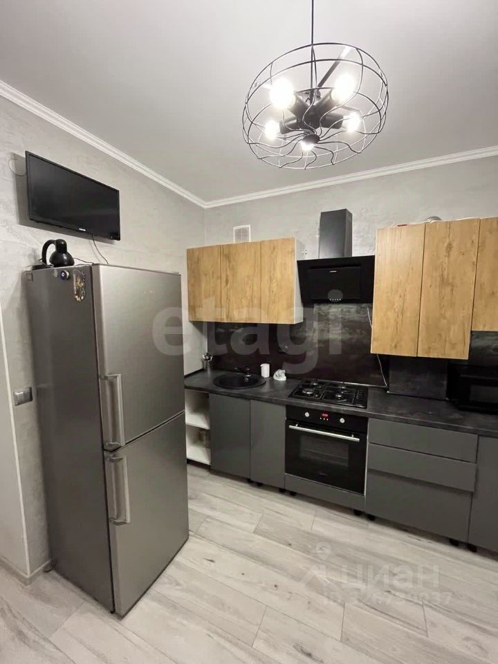 Квартира полностью укомплектована для комфортного проживания: холодильник, плита, микроволновка, стиральная машина, телевизор. Из мебели — кухонный гарнитур, системы хранения, спальные места. Всё готово к вашему заселению.