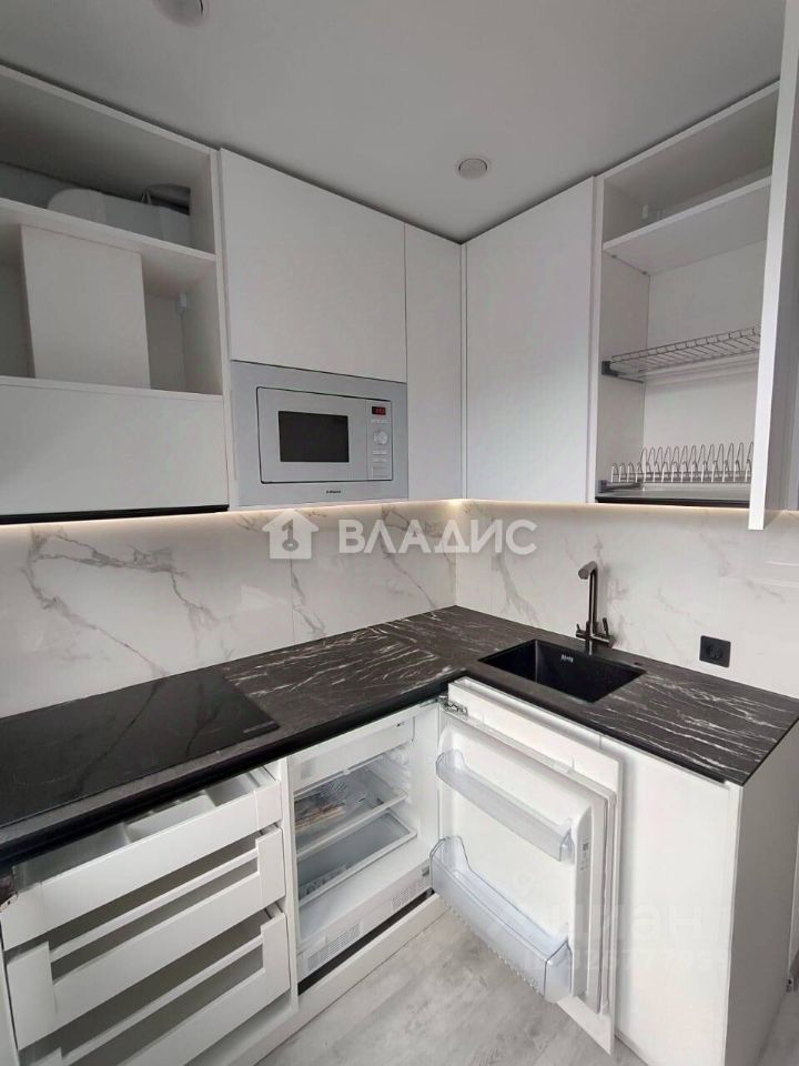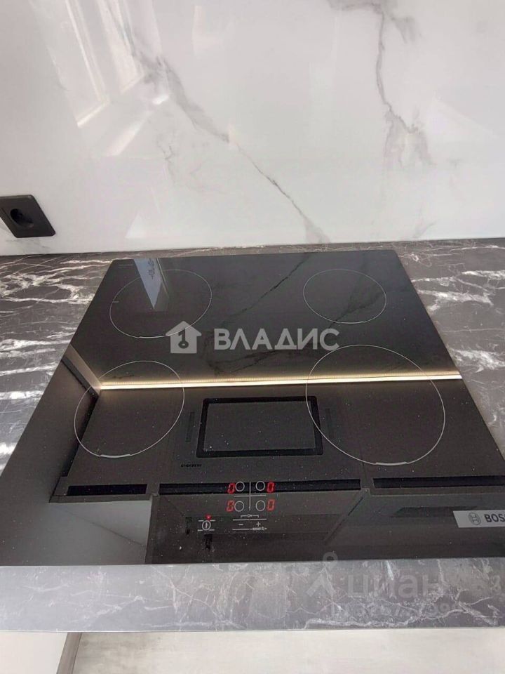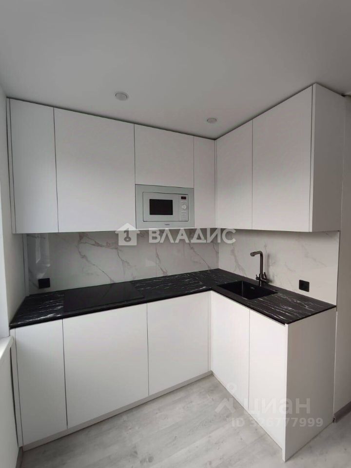 .В квартире сделан евроремонт. Вся мебель и техника новые, после ремонта никто не жил. Встроенная корпусная мебель по индивидуальному проекту: кухня с фасадами МДФ - Пластик с фарнитурой BLUM, со встроенной техникой: холодильник , микроволновка, индукционная плита фирмы Bosch, вытяжка, мойка, новая стиральная машина LG. В спальне встроенный шкаф с витриной из алюминиевого фасада в рамке с подсветкой, два стола, четыре стула фирмы KEA (часть мебели на фото пока в упаковке).