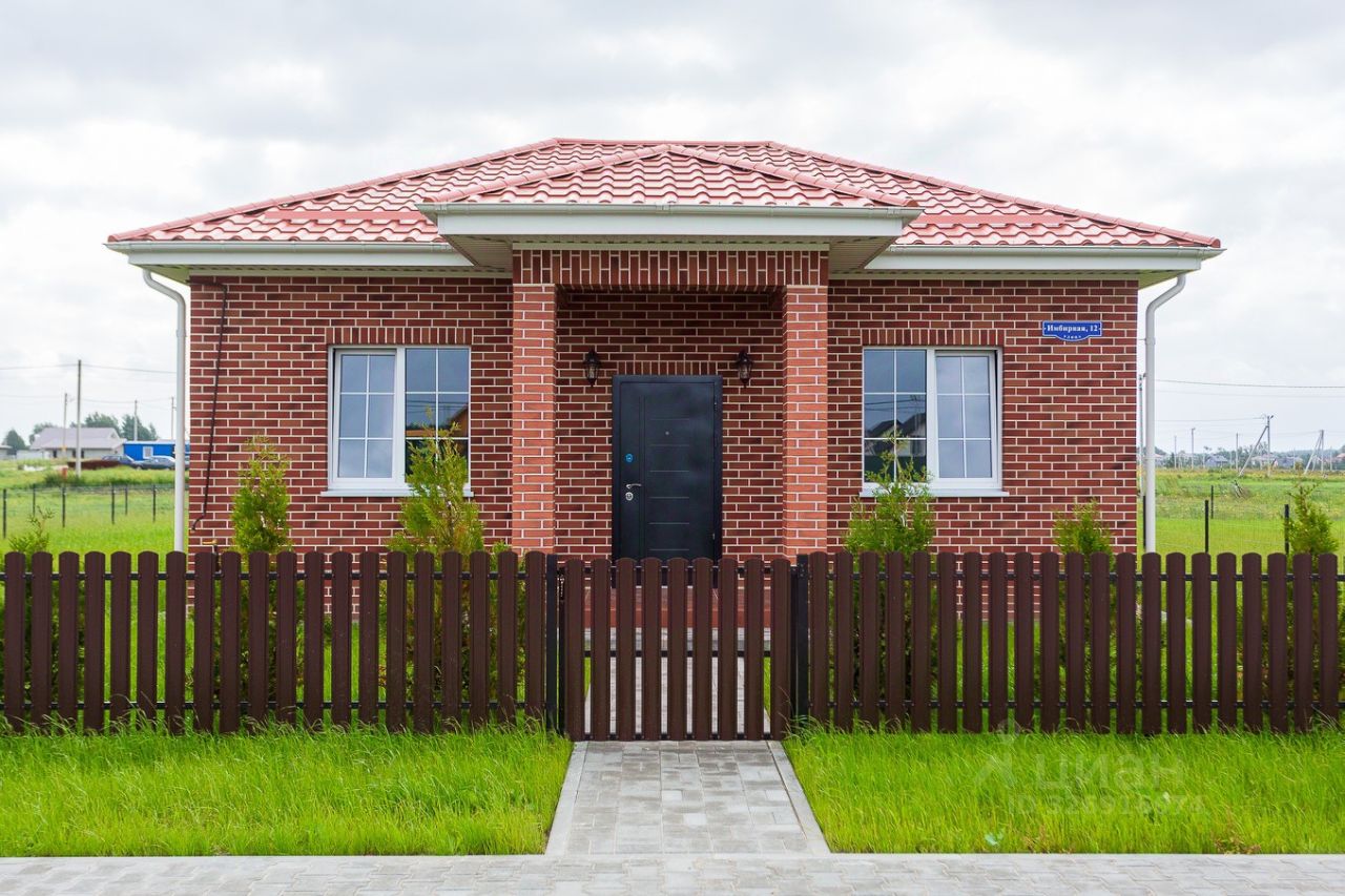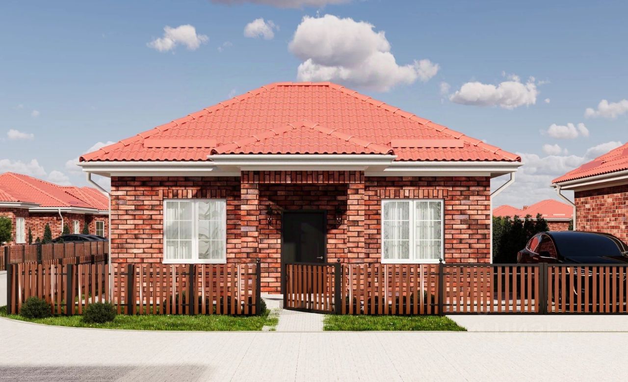 Дом продается в сером ключе. Участок ровный, огорожен забором, засеян газоном, есть парковочные места.