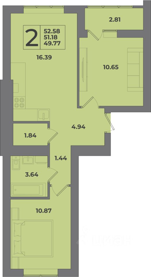 Общая площадь52,58 м2