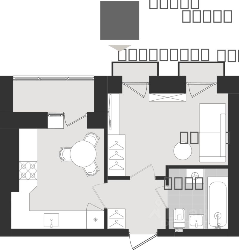 Продаётся 1-комнатная квартира в строящемся доме (Дом 5), срок сдачи: III-кв. 2027, общей площадью 30.84 кв.м., на 9 этаже. Новый жилой комплекс ''Этюд'' от Группы компаний ''Модуль-Стройград'' расположен в г. Калининград на ул. Поленова.