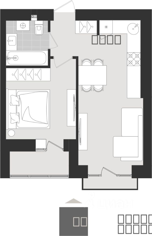 Продаётся 1-комнатная квартира в строящемся доме (Дом 5), срок сдачи: III-кв. 2027, общей площадью 38.89 кв.м., на 9 этаже. Новый жилой комплекс ''Этюд'' от Группы компаний ''Модуль-Стройград'' расположен в г. Калининград на ул. Поленова.