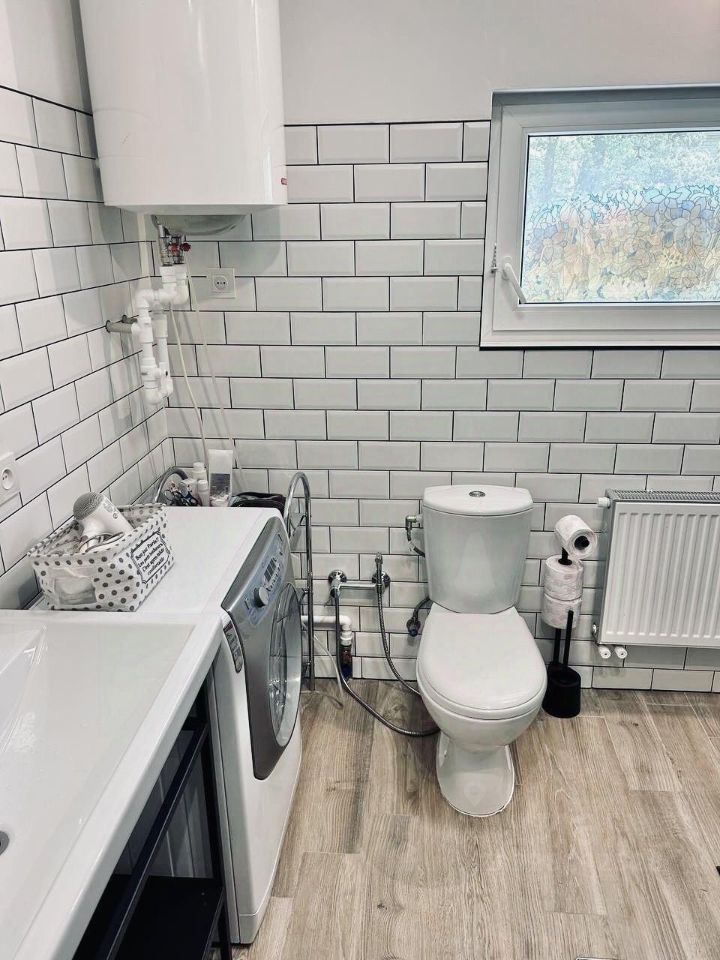 Характеристики дома - 120,1 кв.м Конструкция: Финский проект, облицован кирпичом, утеплен и оштукатурен. Ленточный фундамент усилен, оборудована дренажная система вокруг дома. Коммуникации: Отопление (2 типа): Автономное газовое (природный газ), сохранена возможность отопления котлом. Электричество: 15 кВт. Водоснабжение: Центральное. Канализация: Септик. В доме комфортно в любое время года (зимой тепло, летом не жарко).