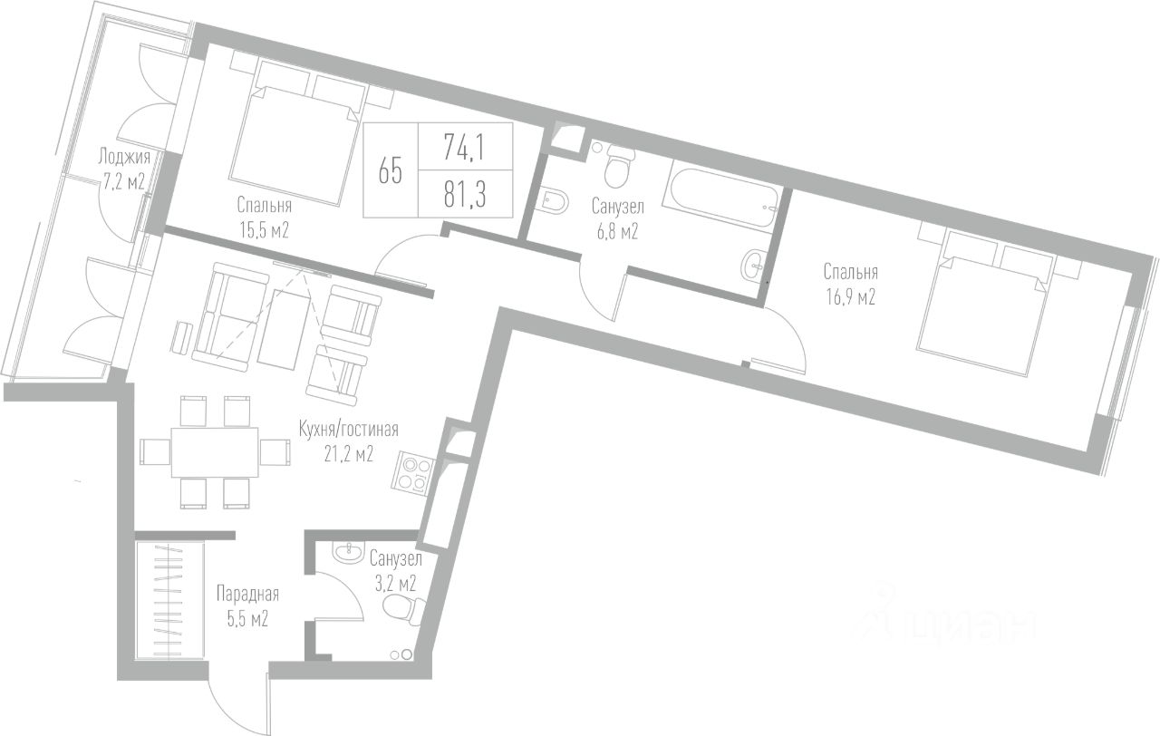 Общая площадь81,3 м2