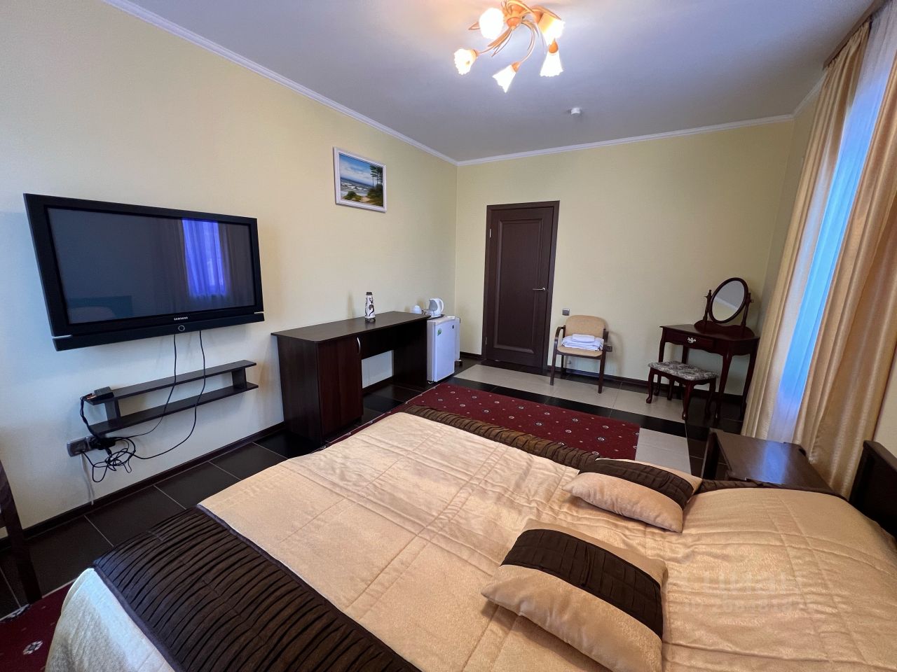 В каждой комнате есть кровать, шкаф, стол, скамейка, телевизор, чайник, холодильник. Большой запас постельного белья и все постельные принадлежности. Посудомоечная и стиральная машинки.