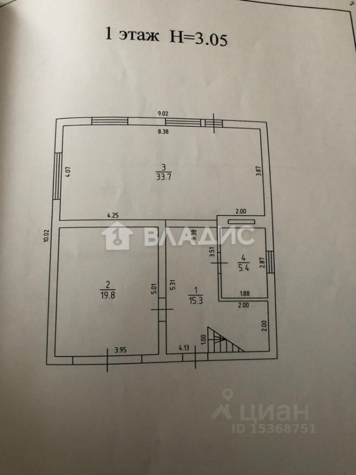 Общая площадь - 225,1 кв.м., жилая площадь - 54 кв.м.